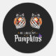 Sticker Rond He Likes My Pumpkins Skeleton Hand Halloween Coupl