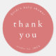 Ce boho rouge unique baby shower simple merci autocollant de la collection Heidi est parfait pour un baby shower simple ou un bébé sprinkle. Le design rouge fraise présente une typographie moderne sans ornement de boho avec un style minimaliste unique. Personnalisez vos autocollants de faveur avec le nom de la future maman et la date de la douche.
