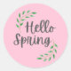 Sticker Rond Hello Spring Pink Pastel Springtime