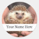 Adorable Hérisson mignon dans Sticker rond classique main. Un autocollant parfait pour les amoureux des animaux mignons ! Un hérisson doux dans la paume de vos mains. Hérisson autocollant, autocollant animal mignon, autocollant hérisson adorable, hérisson dans les mains, autocollant photo hérisson, Personnalisez-le!