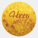 Sticker Rond HEUREUSE NOUVELLE ANNÉE avec étoile + feuille d'or