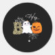 Sticker Rond Hey Boo mignon Citrouille fantôme face Halloween
