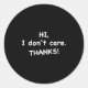 Sticker Rond Hi, I Don't Care Thanks