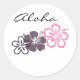 Sticker Rond hibiscus gris et rose thème hawaïen