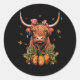 Sticker Rond Highland Cow Fall Et Citrouilles Feuille Automne R