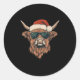 Sticker Rond Highland Cow Santa Hat Funny Mignonne Animal Farme