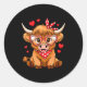 Sticker Rond Highland Cow Valentines Day Funny Hearts Valentine
