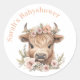 Sticker Rond Highland vache fleurie boho fête en faveur autocol