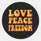 Sticker Rond Hippie AIMER LA PAIX LIBERTÉ 60s les années 70 Cra