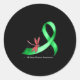 Sticker Rond Hippie Dragonfly Green Ribbon Maladie rénale Aware