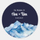 Sticker Rond Hiver Bleu Blanc Snowy Mountains Mariage