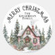 Ajoutez une touche finale festive à vos cadeaux de fête ou enveloppes de cartes de vœux avec cet autocollant de Noël charmant. Le design présente une cabane d'hiver aquarelle confortable nichée parmi les pins et les baies de houx, avec des détails enneigés, une couronne sur la porte et de la fumée s'élevant de la cheminée, apportant une atmosphère chaleureuse et hivernale à toute célébration.