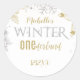Sticker Rond Hiver Onederland Anniversaire Silver Gold Snowflak