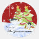 PALETTE DE COULEUR : Tendance moderne de Noël rouge et blanc avec chaux jaune, or, vert et rouge. COLLECTION DE DESIGN : Personnalisée avec votre propre nom de famille en utilisant le champ de modèle facile, vous pouvez créer vos propres étiquettes personnalisés, toppers de paquet ou scellés d'enveloppe. Il s'agit d'un autocollant fantaisiste, amusant, à thème Noël et hiver, d'un sceau ou d'un ensemble de décoration qui a été fait de pingouins peints à la main aquarelle d'Audrey Jeanne Roberts. Les sapins de Noël sont décorés d'une guirlande rouge drapée, de toppers d'étoiles tourbillonnantes en tas de neige avec des flocons de neige faits main tombant dans l'arrière - plan et un mignon manchot glisse sur une colline sur son ventre et un deuxième pingouin danse avec joie et un joli oiseau lunaire avec une queue tourbée assise sur un des arbres couverts de neige. Ce design est disponible sur une large gamme de produits.