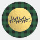 Sticker Rond HO HO HO Christmas Buffalo Plaid Gold Foil