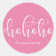 Cet autocollant de Noël moderne comporte l'expression "ho ho ho ho ho" dans une calligraphie moderne en écriture blanche sur un arrière - plan rose. La couleur Arrière - plan peut être modifiée à l'aide de l'outil de personnalisation. Sélectionnez une couleur dans la palette ou utilisez votre propre numéro hexadécimal.