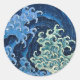Sticker Rond Hokusai Vague féminine Océan Vintage