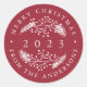 Wintry chic enregistrer la date autocollants avec des baies blanches et des bouges de pin sur un arrière - plan rouge canneberge avec votre date mariage au centre, entouré par "enregistrer la date" et vos noms en lettres blanches. Un choix élégant et festif pour les mariages d'hiver, de vacances ou de Noël. Coordonnées avec notre collection Holly et Pine.