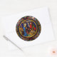Featuring the beautiful, luminous design of the Holy Family (Mary, Joseph, and Jesus) captured in an artistic faux stained-glass style, these stickers are perfect for personalizing gifts, envelopes, crafts, and more. The rich colors and intricate details truly shine on a clean, round surface.