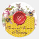 STICKER ROND HONEY BEE, CYCLAMEN FLEURS RED WAX SEAL MONOGRAMME