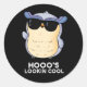 Sticker Rond Hooo's Lookin Cool Funny Owl Pun Dark BG