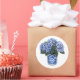 Sticker Rond Hydrangées bleues dans un pot en céramique fleurie