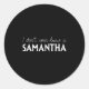 Sticker Rond I Don't Even Know A Samantha Funny Distressed Snow
