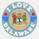 I Love Delaware State Map and Flag. S'inspirant du drapeau de l'Etat, ce design se décline en deux tons bleu et beige, plus le coeur rouge. Ceci encadre la pièce centrale du drapeau d'état, avec une silhouette de la carte d'état sur le bouclier. Avec la typographie en détresse du cool avec l'expression "I LOVE DELAWARE".