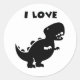 Sticker Rond I Love Dinosaures tyrannosaurus rex Silhouette Art