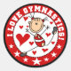 Une figurine en bâton gymnaste dans un léotard rouge avec beaucoup de coeurs rouges et texte qui dit I Love Gymnastique sur T-shirts, boutons, sweat - shirts à capuche, tasses, sacs, cartes, boutons, porte - clés, petits boulots, et bien plus encore.