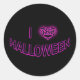 Sticker Rond I Love Halloween (Batty Love Heart) violet