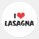 Sticker Rond I Love Heart Lasagna - Italien Food Pasta Lover