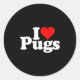 Sticker Rond I Love Heart Pugs Pug Dog Canine