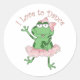 Sticker Rond I Love to Dance Ballerina Frog Rose