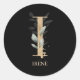 Lettre I monogramme floral. Lettre I en texture brun doré accentué de feuilles verts composés d'aquarelle, fleurs de fleurs et éclaboussures d'or fondu. Personnalisé avec nom dans la police correspondante.