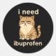 Sticker Rond I Need Ibuprofen Funny Sad Cat Meme For Men Women