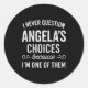 Sticker Rond I Never Question Angela's Choices Because I'm One