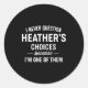 Sticker Rond I Never Question Heather's Choices Because I'm One