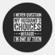 Sticker Rond I Never Question My Husband's Choices Marriage Fun