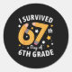 Sticker Rond I Survived 67th Day Of 6th Grade 67 Days Of School