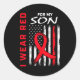 Sticker Rond I Wear Red For My Son Heart Disease Awareness Flag