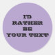 Sticker Rond I'd rather be. your text - purple with black text