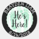 Sticker Rond Il est là, nouveau Faire-part bébé garçon