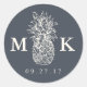 Personnalisez ces autocollants avec vos initiales, monogrammes ou duogrammes et date mariage pour une façon chic de terminer vos invitations de mariage, enregistrer les dates, les faveurs ou les cartes de remerciements. Le design est composé d'un arrière - plan bleu marine gris et fumé avec des lettres d'ivoire et une illustration vintage d'ananas pour une touche méridionale ou tropicale.