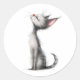 Illustration stylisée d'un chat froissé, à l'allure fantaisiste, avec une fourrure longue, mince et légèrement impétueuse. Le chat a de grandes oreilles pointues avec une coloration intérieure rose, un petit nez rose et des fouets minces. Ses yeux sont fermés, et il semble incliner sa tête vers le haut avec une expression de contentement. La fourrure est principalement blanche, avec des nuances grises subtiles, ce qui lui donne profondeur et texture.