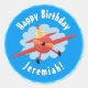 Sticker Rond Illustration d'un avion rouge volant mignon