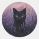 Sticker Rond Illustration d'un chat noir dans un champ de lavan