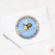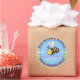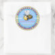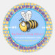 Habille tes pots de miel maison avec cette jolie illustration représentant notre abeille dessinée de façon amusante sur un arrière - plan à motifs bleus.