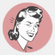 Sticker Rond Illustration rétro d'une femme clignant de l'œil s