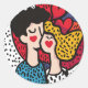 Illustration pop art dynamique et ludique montrant un couple amoureux. L'oeuvre présente des motifs audacieux, des couleurs vives et des coeurs fantaisistes, mettant l'accent sur le thème de l'amour et de l'affection. Idéal pour les dessins de la Saint-Valentin, les cartes de voeux ou les projets romantiques.